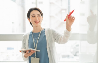 未経験からのキャリア形成は、不安がつきもの。そんなときは、実際に現場を経験した先輩社員に相談できます。研修中の進路選択、卒業後のキャリアパス、個別のキャリア目標についてなど、どんなことでも気軽に相談可能。実務経験に基づいた、説得力のあるアドバイスをもらえるので、自信を持って次のステップへ進むことができます。