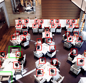 滞在人数や来場者数のカウント、異常挙動(うずくまり・転倒)などを
