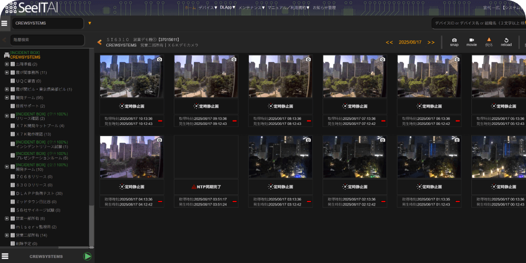SeeITに登録された大量のカメラの中から、各々の管理権限に応じて一括で表示することができ、全体を素早く見渡して適切な判断ができます。