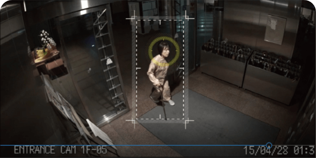 各種センサーと連動して、又はカメラに搭載されたAIソフトの検知によって自動通報を行います。これからは人間に匹敵する認知技術が危険や異常をしっかり見守り、リアルタイムに通報します。