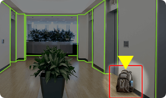 高度なAI技術で、ビジネスバッグ・バックパック・紙袋・スーツケース・レジ袋・段ボール箱といった物体を認識して不審物の置き去りや危険物の所持を検知します。