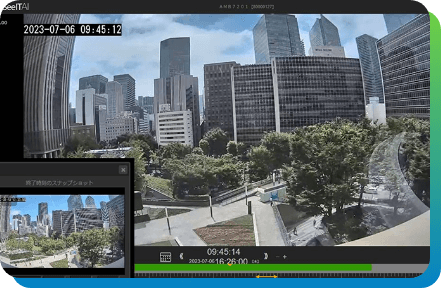サムネール一覧では、システム側で最適な通信量制御やネットワーク制御を行い、1万台をこえるカメラであってもノートパソコンでサクサク管理出来る軽量さを具現化しました。
